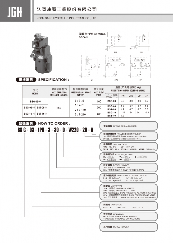 JGH电磁控制溢流阀常规型号参考:BSG-03-1NP-0 , BSG-03-1NP-1 , BSG-03-1NP-2 , BSG-03-1NP-3 , BSG-03-1PN-0 , BSG-03-1PN-1 , BSG-03-1PN-2 , BSG-03-1PN-3 , BSG-03-2P-0 , BSG-03-2P-1 , BSG-03-2P-2 , BSG-03-2P-3 , BSG-03-2PN-0 , BSG-03-2PN-1 , BSG-03-2PN-2 , BSG-03-2PN-3 , BSG-03-3P-0 , BSG-03-3P-1 , BSG-03-3P-2 , BSG-03-3P-3 , BSG-06-1NP-0 , BSG-06-1NP-1 , BSG-06-1NP-2 , BSG-06-1NP-3 , BSG-06-1PN-0 , BSG-06-1PN-1 , BSG-06-1PN-2 , BSG-06-1PN-3 , BSG-06-2P-0 , BSG-06-2P-1 , BSG-06-2P-2 , BSG-06-2P-3 , BSG-06-2PN-0 , BSG-06-2PN-1 , BSG-06-2PN-2 , BSG-06-2PN-3 , BSG-06-3P-0 , BSG-06-3P-1 , BSG-06-3P-2 , BSG-06-3P-3 , BSG-10-1NP-0 , BSG-10-1NP-1 , BSG-10-1NP-2 , BSG-10-1NP-3 , BSG-10-1PN-0 , BSG-10-1PN-1 , BSG-10-1PN-2 , BSG-10-1PN-3 , BSG-10-2P-0 , BSG-10-2P-1 , BSG-10-2P-2 , BSG-10-2P-3 , BSG-10-2PN-0 , BSG-10-2PN-1 , BSG-10-2PN-2 , BSG-10-2PN-3 , BSG-10-3P-0 , BSG-10-3P-1 , BSG-10-3P-2 , BSG-10-3P-3 , BST-06-1NP-0 , BST-06-1NP-1 , BST-06-1NP-2 , BST-06-1NP-3 , BST-06-1PN-0 , BST-06-1PN-1 , BST-06-1PN-2 , BST-06-1PN-3 , BST-06-2P-0 , BST-06-2P-1 , BST-06-2P-2 , BST-06-2P-3 , BST-06-2PN-0 , BST-06-2PN-1 , BST-06-2PN-2 , BST-06-2PN-3 , BST-06-3P-0 , BST-06-3P-1 , BST-06-3P-2 , BST-06-3P-3 , BST-10-1NP-0 , BST-10-1NP-1 , BST-10-1NP-2 , BST-10-1NP-3 , BST-10-1PN-0 , BST-10-1PN-1 , BST-10-1PN-2 , BST-10-1PN-3 , BST-10-2P-0 , BST-10-2P-1 , BST-10-2P-2 , BST-10-2P-3 , BST-10-2PN-0 , BST-10-2PN-1 , BST-10-2PN-2 , BST-10-2PN-3 , BST-10-3P-0 , BST-10-3P-1 , BST-10-3P-2 , BST-10-3P-3
