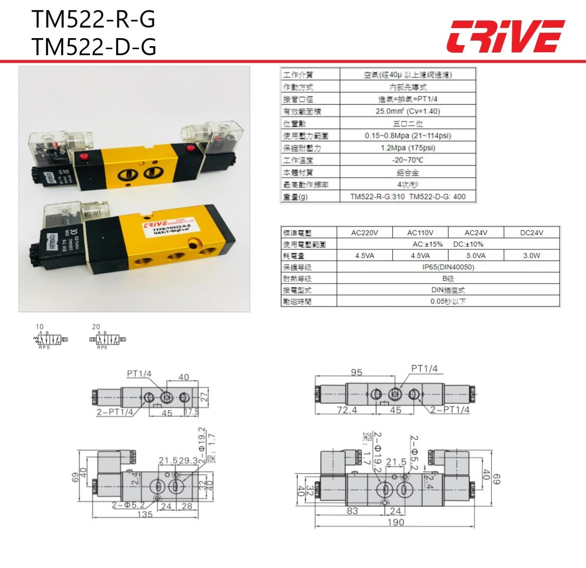 TRIVE电磁阀部分常规型号参考:TM522-R-G , TM522-D-G